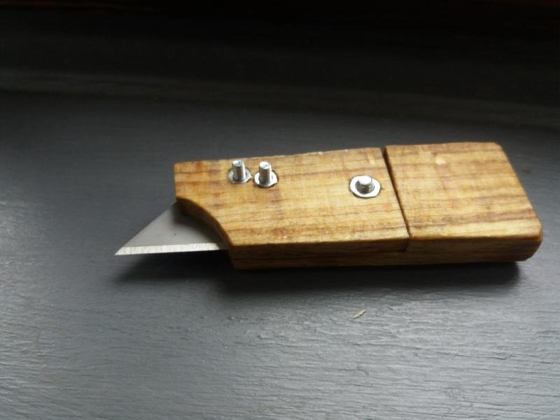 Le cutter plus haut n'a pas bien tenu, j'en ai refait 2, le second le manche est trop compact, bien que ça suffise pour l'usage qu'on en fait généralement.