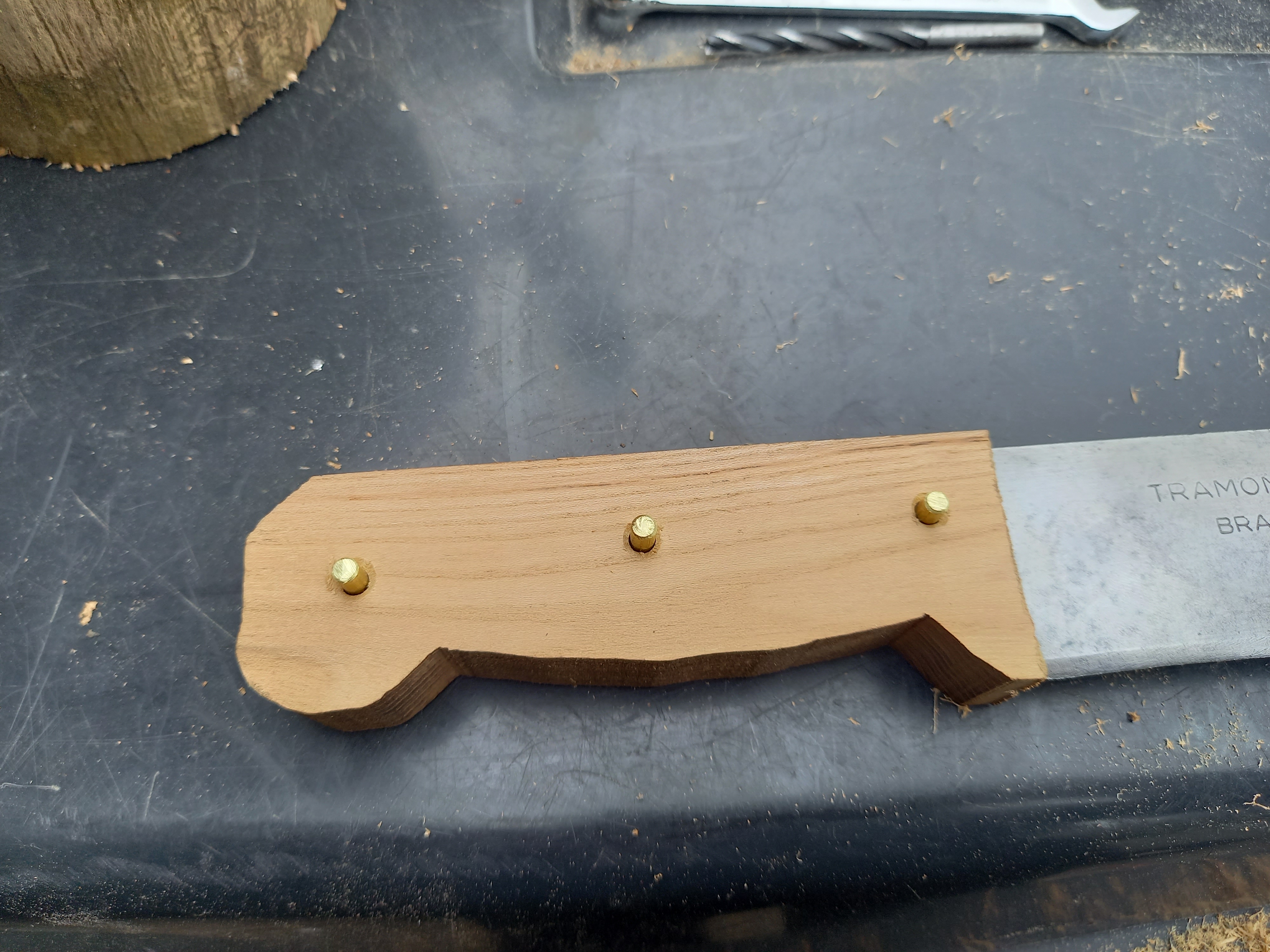 Façonnage d'une nouvelle poignée dans un morceau d'Orme sec