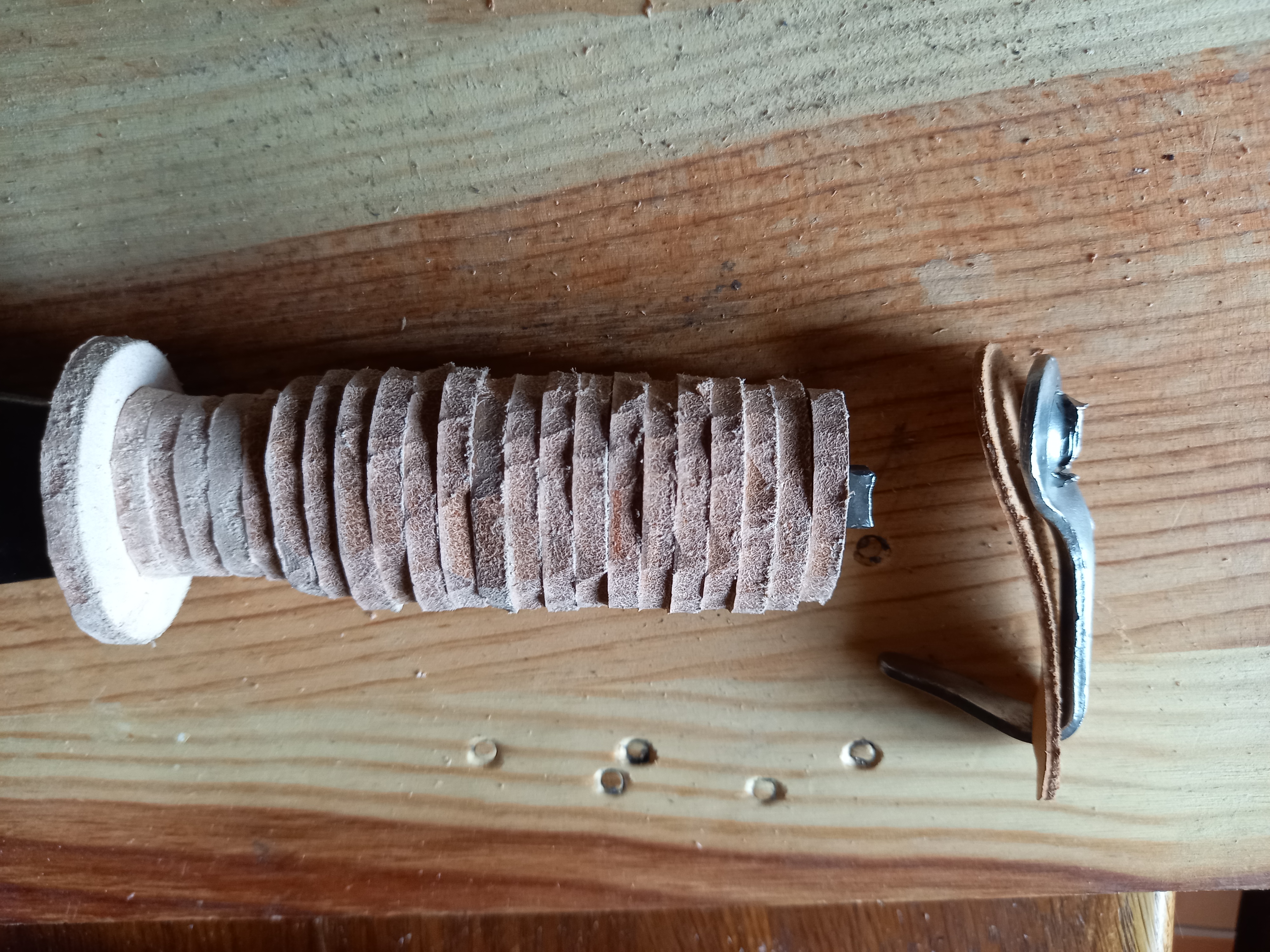 Rivet , couture, teinture et cuir repoussé ça peut servir par exemple pour le badge cuire