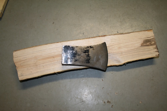 une hachette, une tête pas trop abimée 2 euros en brocante; faire un manche; wouah 2° thème de sortie