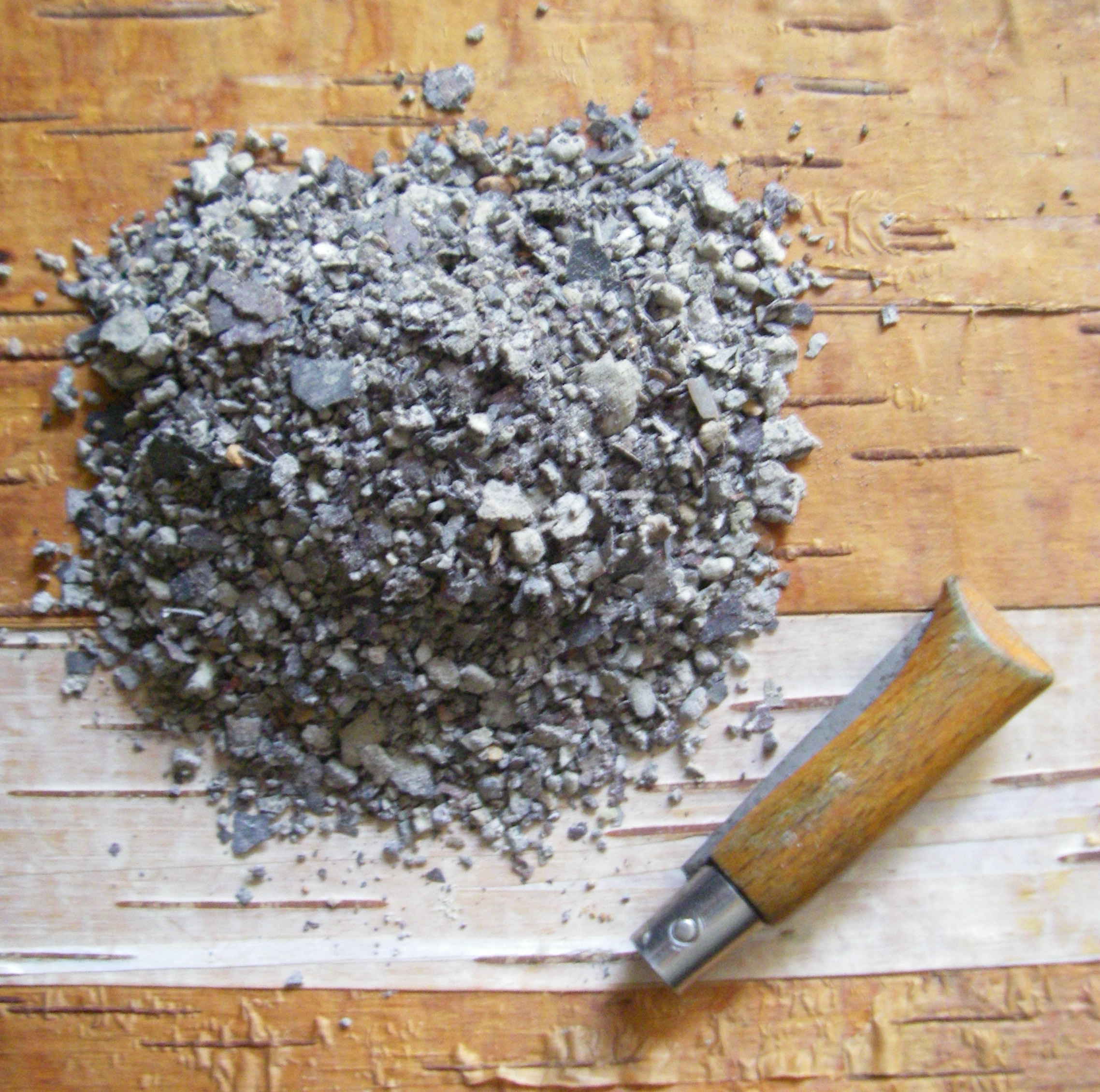 A partir de ce jour, j'ai récupéré tout ce que j'ai pu dans les cendres de mon poêle à bois. C'était au milieu de l'hiver dernier. Maintenant, j'ai 22 grammes de particules magnétiques. C'est peu, mais c'est bien plus que le poids du mini opinel photographié à côté. Et je rêve de faire une petite lame avec ça.