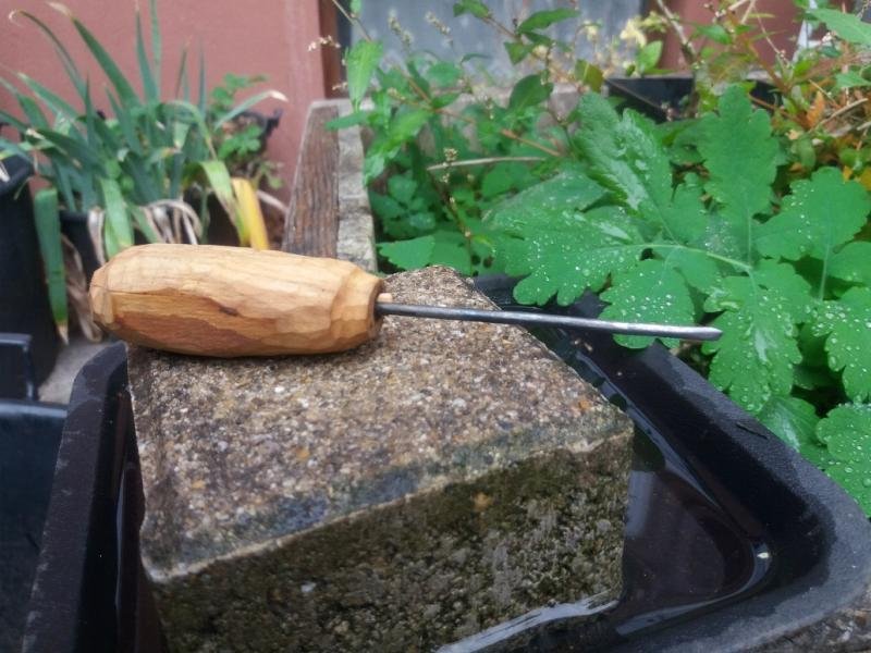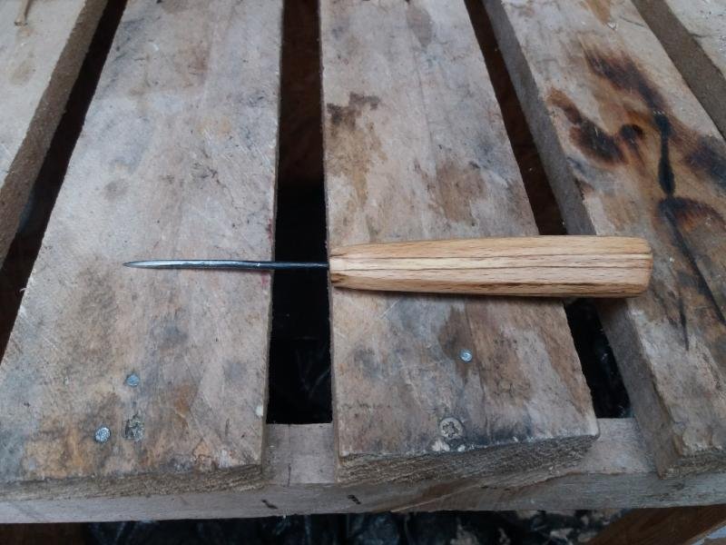 Au final j'ai fait un mini ciseau à bois, celui ci n'est trempé que sur quelques centimètres, j'aimerai en refaire un, ainsi qu'une alène, mais trempé sur toute la longueur.