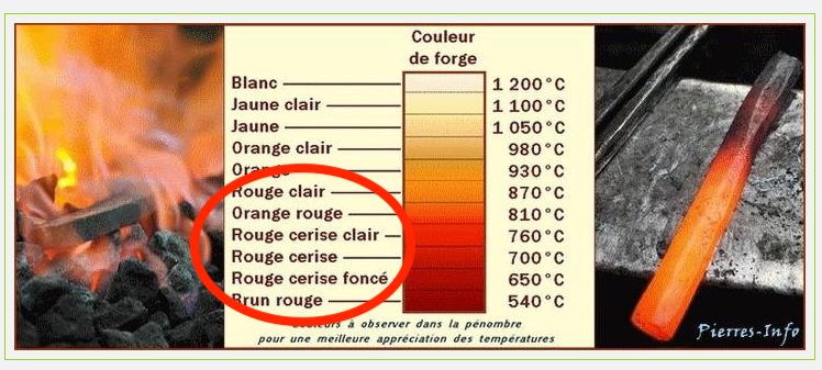 Le nom est rouge gorge pour ce type de trempeLe Quercus a écrit : ↑sam. 10 oct. 2020 09:55 Je ne suis pas un spécialiste mais il me semble que orange et jaune vif c'est beaucoup trop chaud pour la trempe à l'eau. Essaye de tremper rouge cerise et test l'huile de vidange .