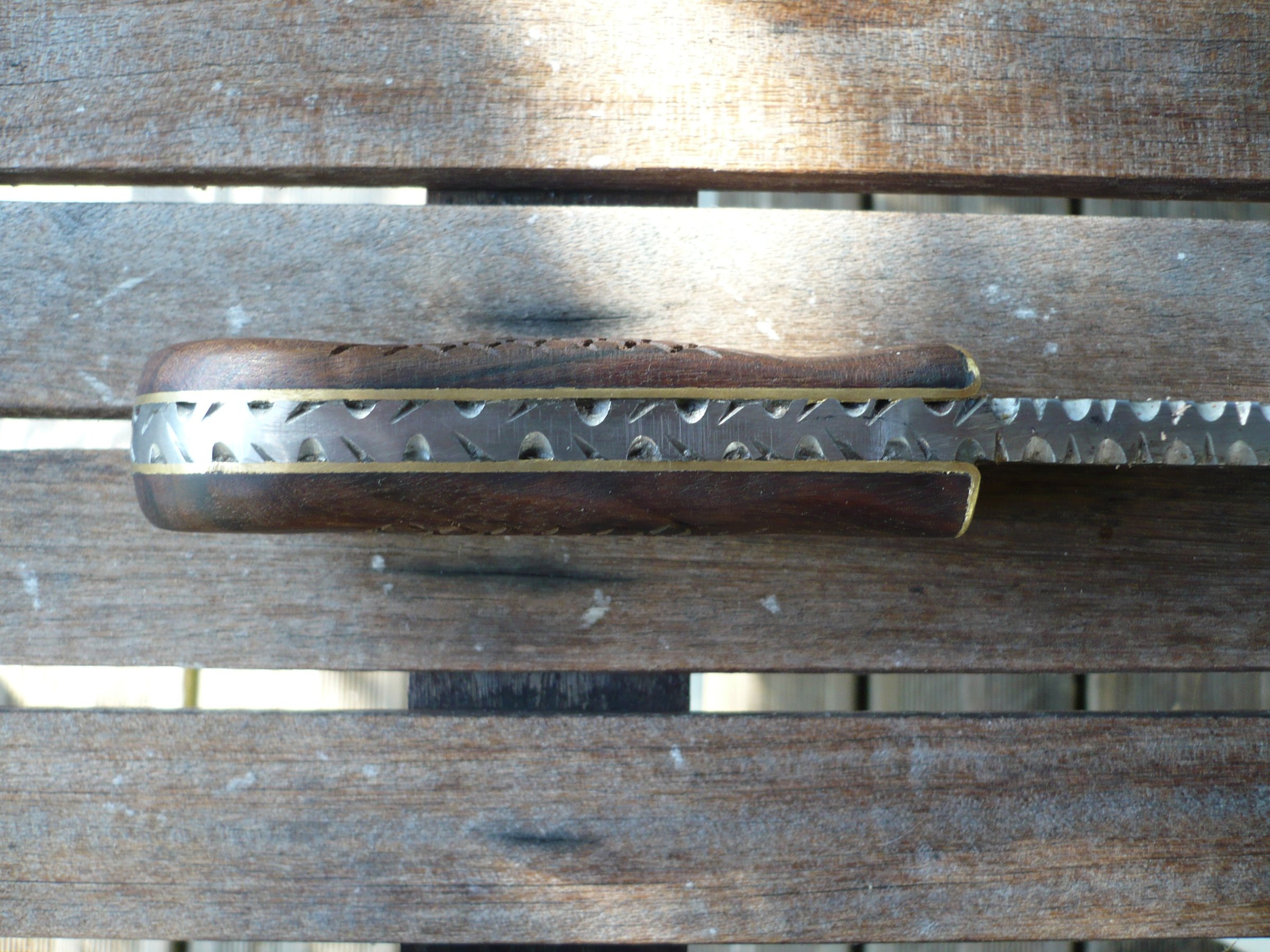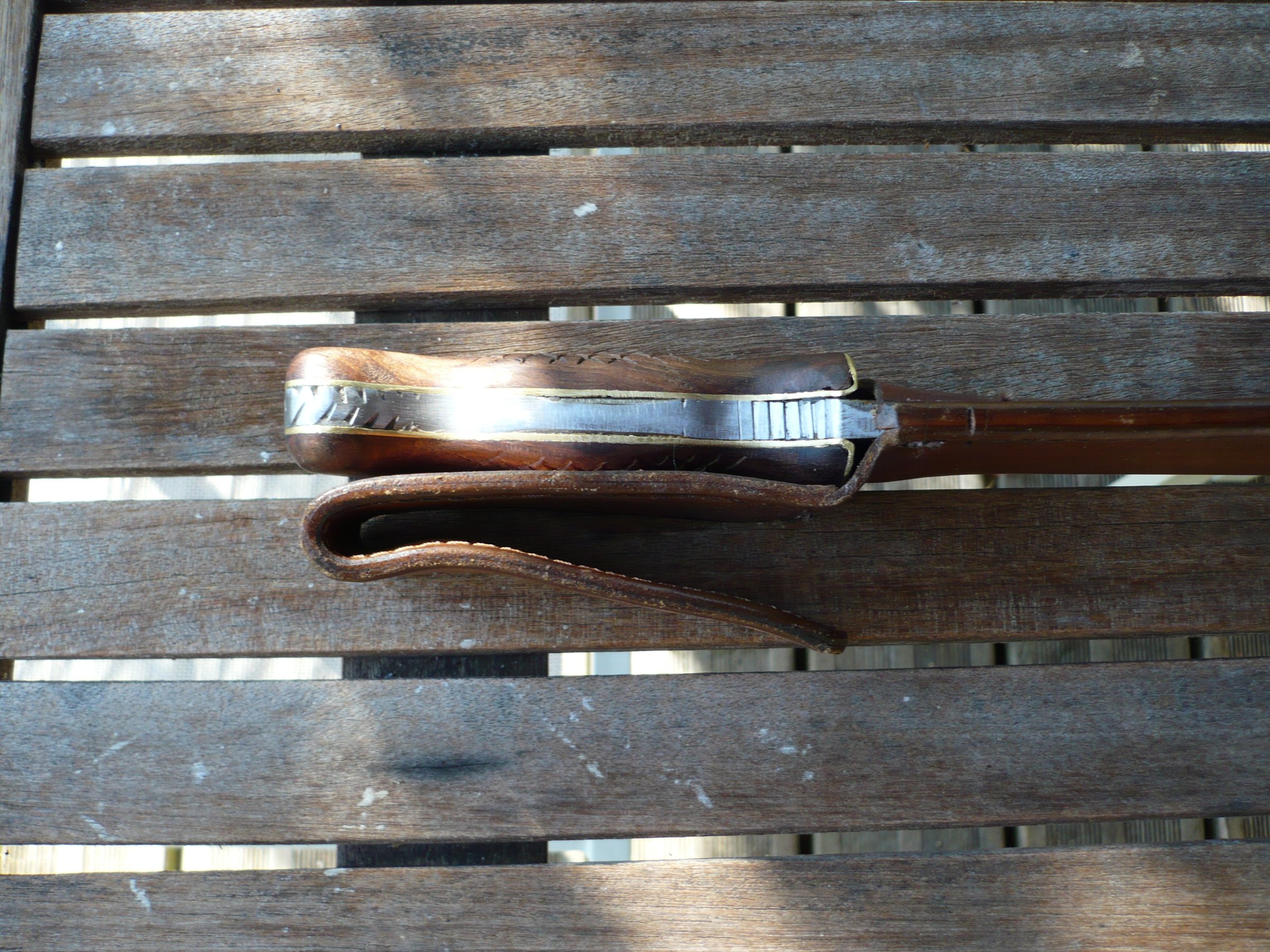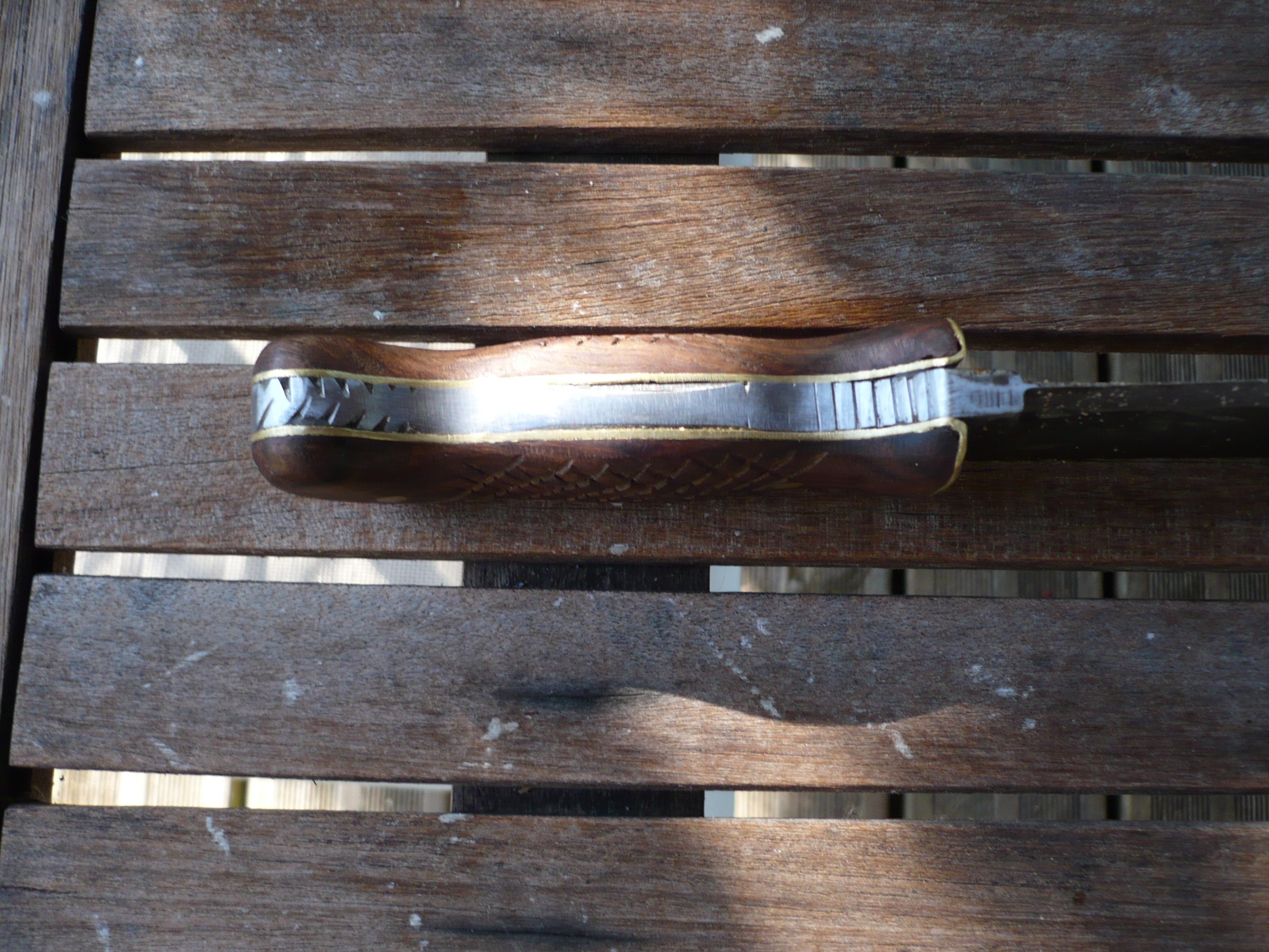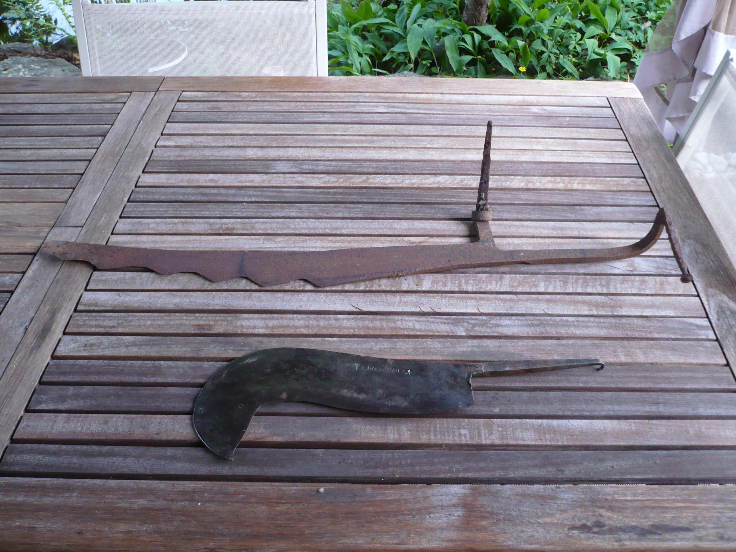 La serpette est en chantier , il me la raccourcie avec un manche en buis et chêne de marais avec bague en corne de vache.