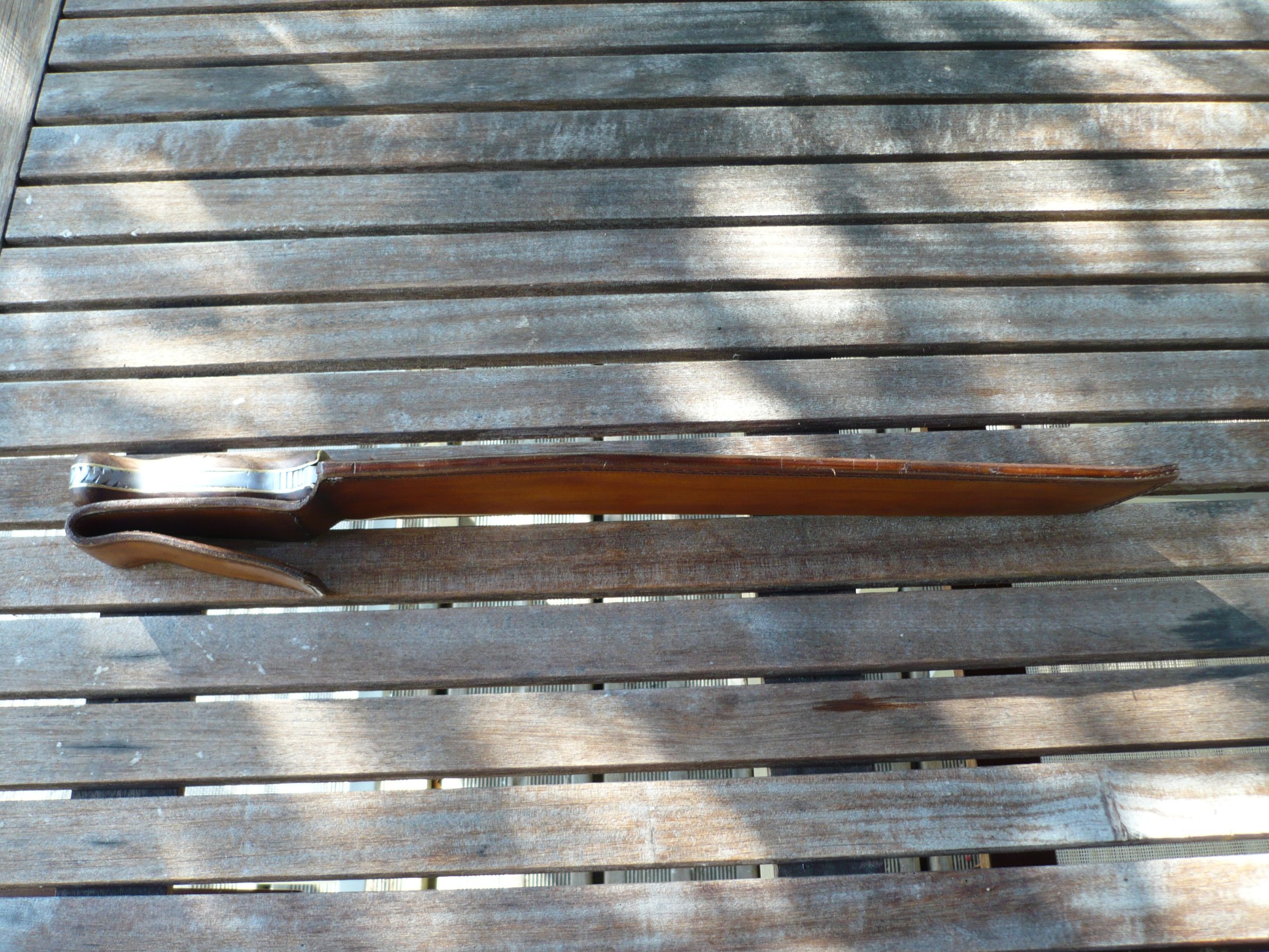 Oui elle est un peu lourde et courte ,1 kilo 100 le cuir compris, pour 48 cm ,l'épaisseur de la lame huit à 4 mm,