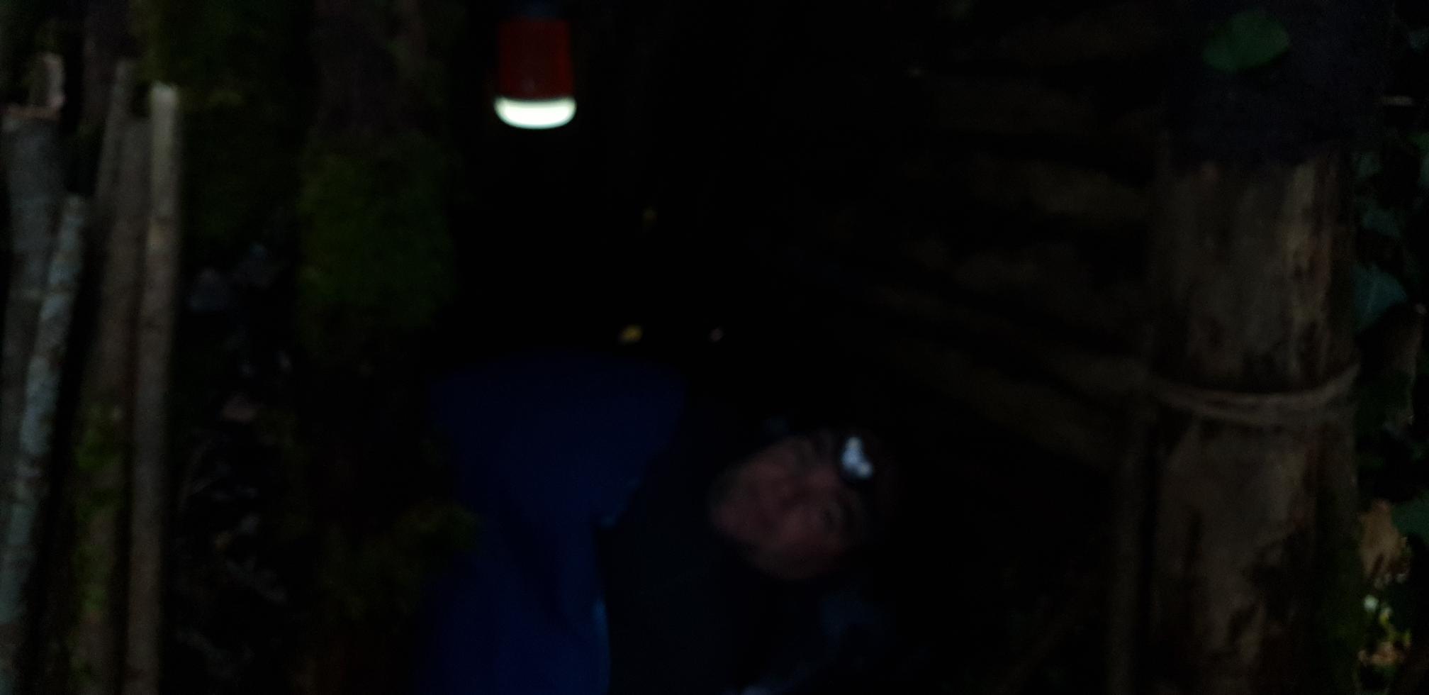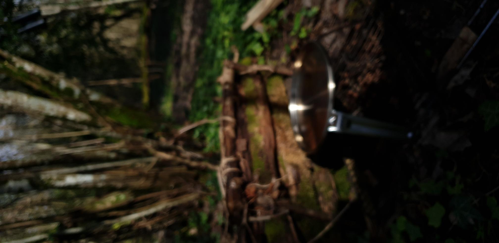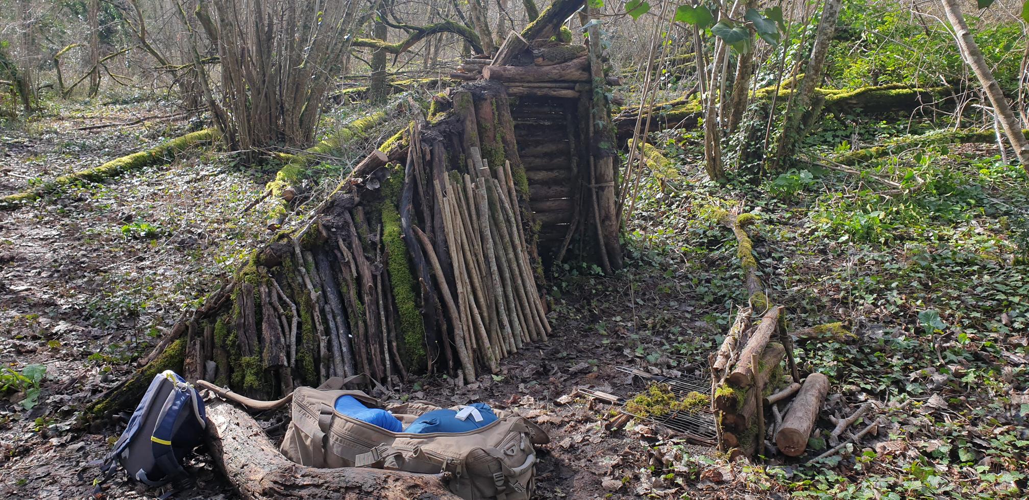 Après avoir construit un abri naturel en bois à partir d'arbres et branches tombés, j'ai effectué une nuit il ya quelques semaines profitant d'une accalmie météorologique.